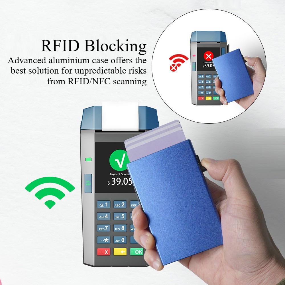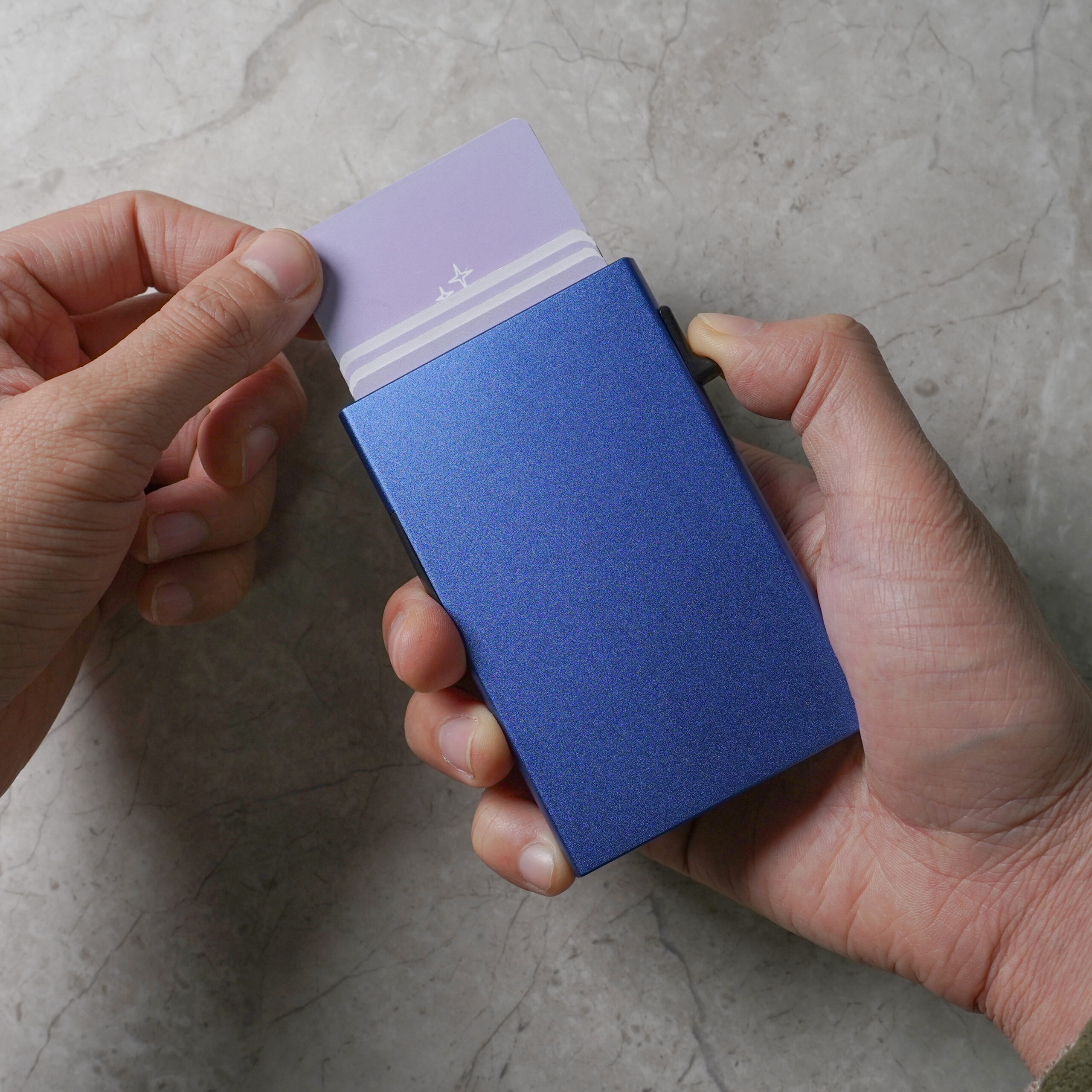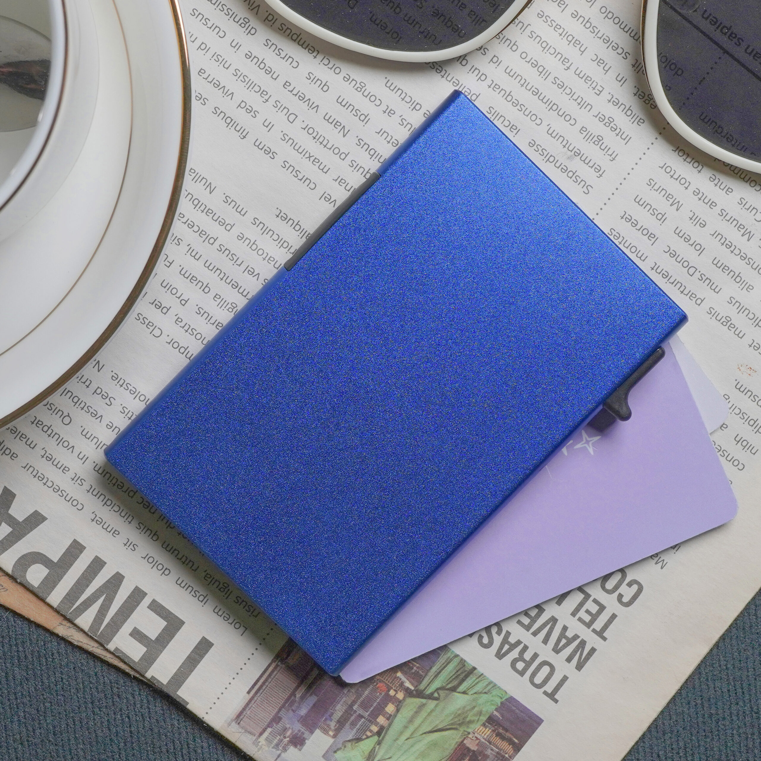 SM7.1 Slim Metal Case Pop Up Wallet for Men and Women – RFID Blocking Credit Card Holder – Blue