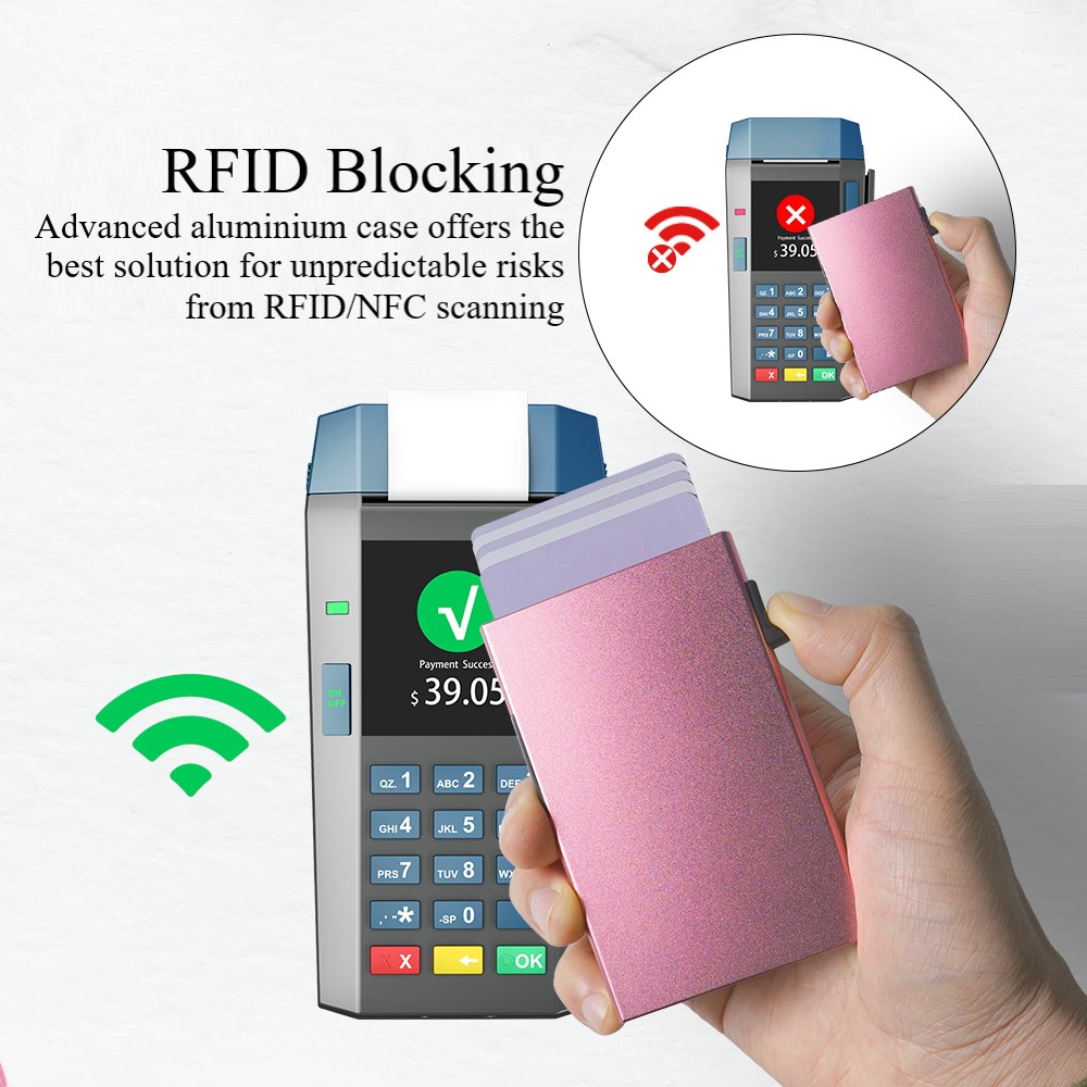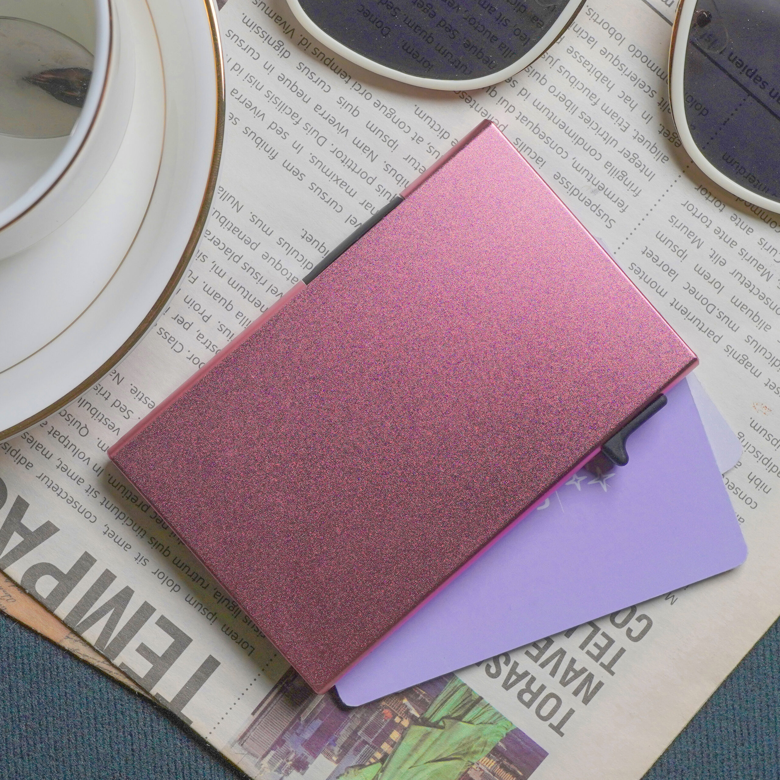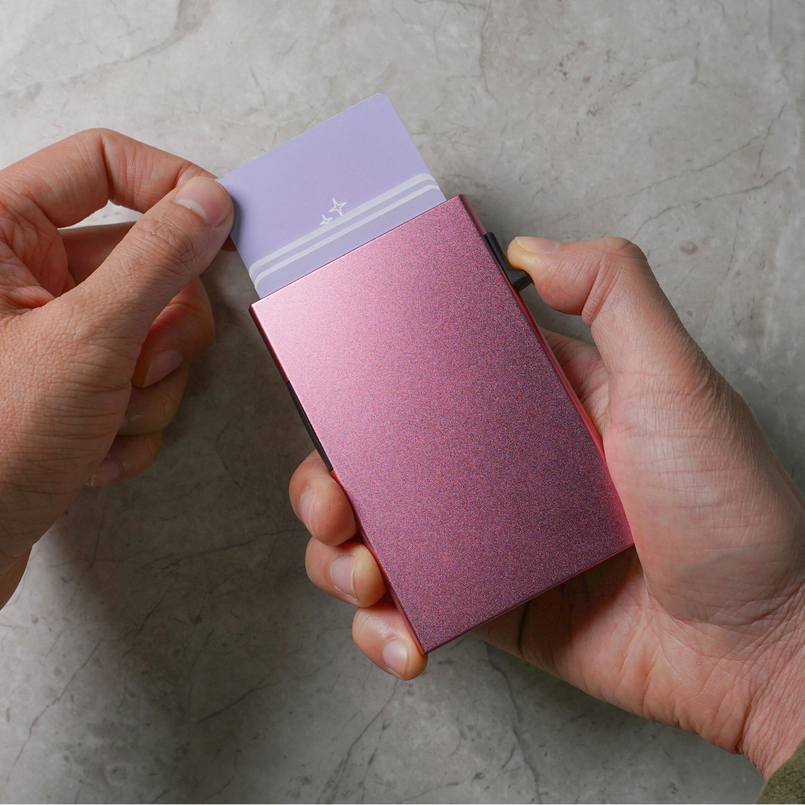 SM7.3 Slim Metal Case Pop Up Wallet for Men and Women – RFID Blocking Credit Card Holder – Pink