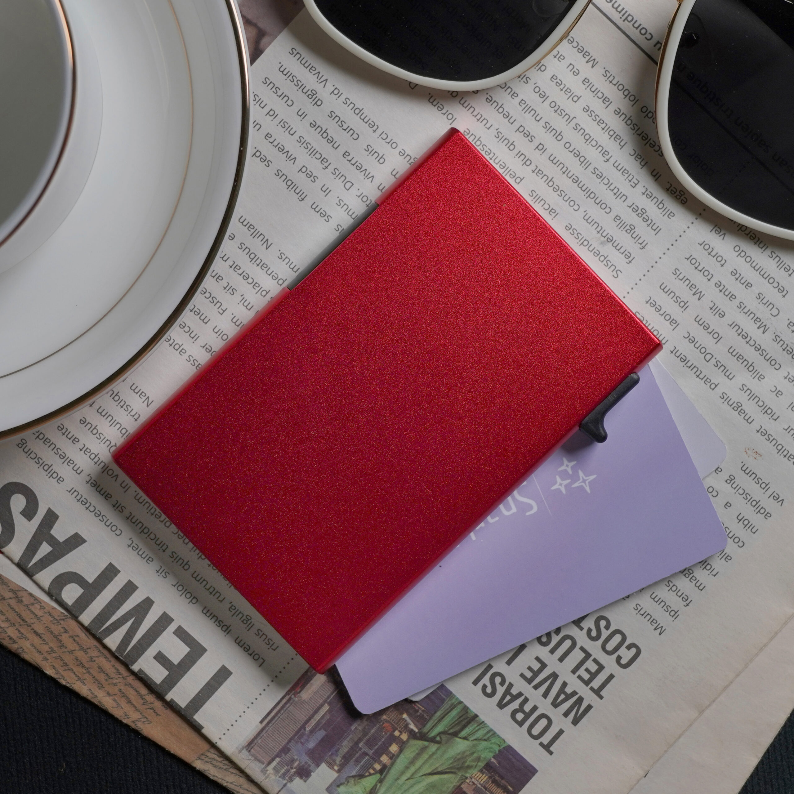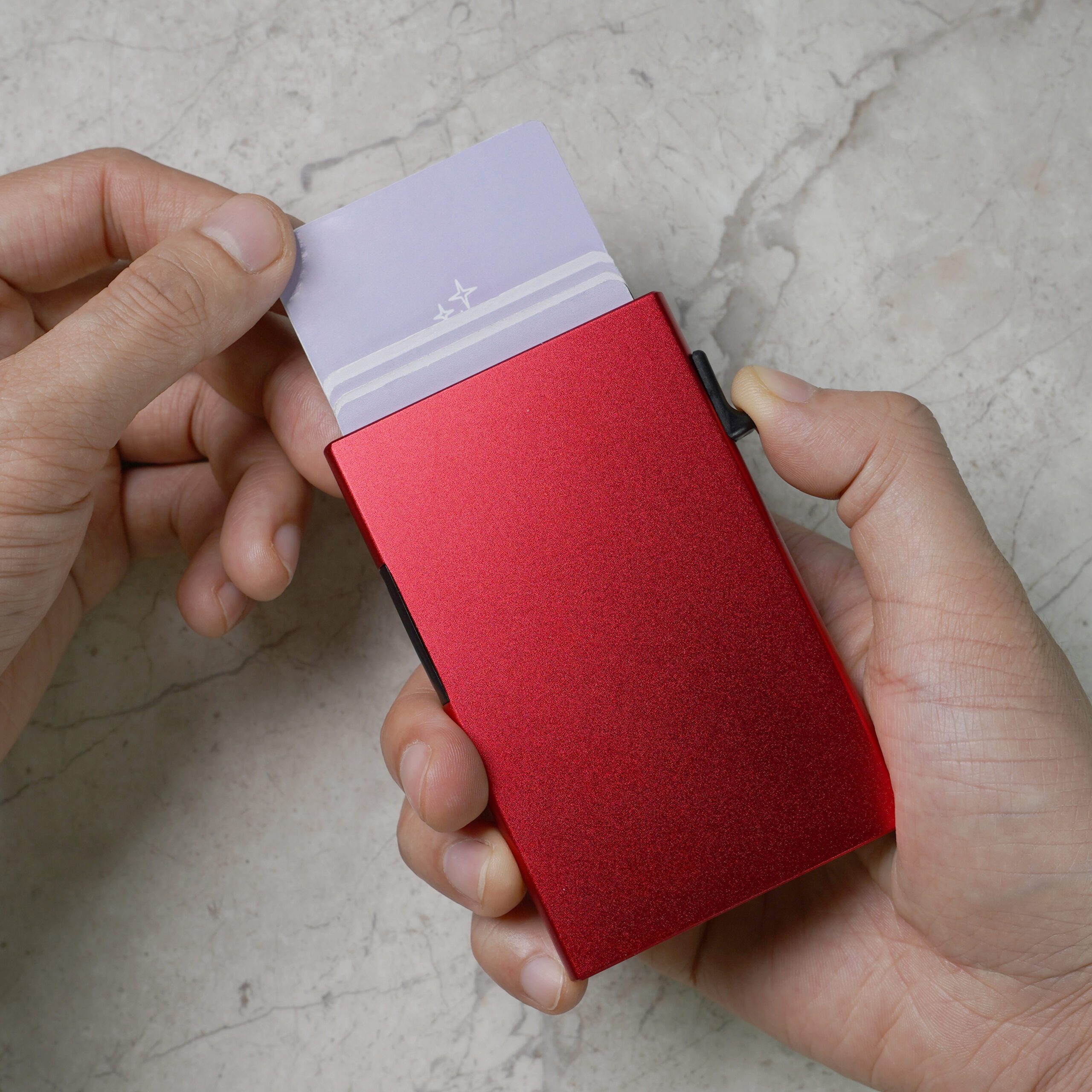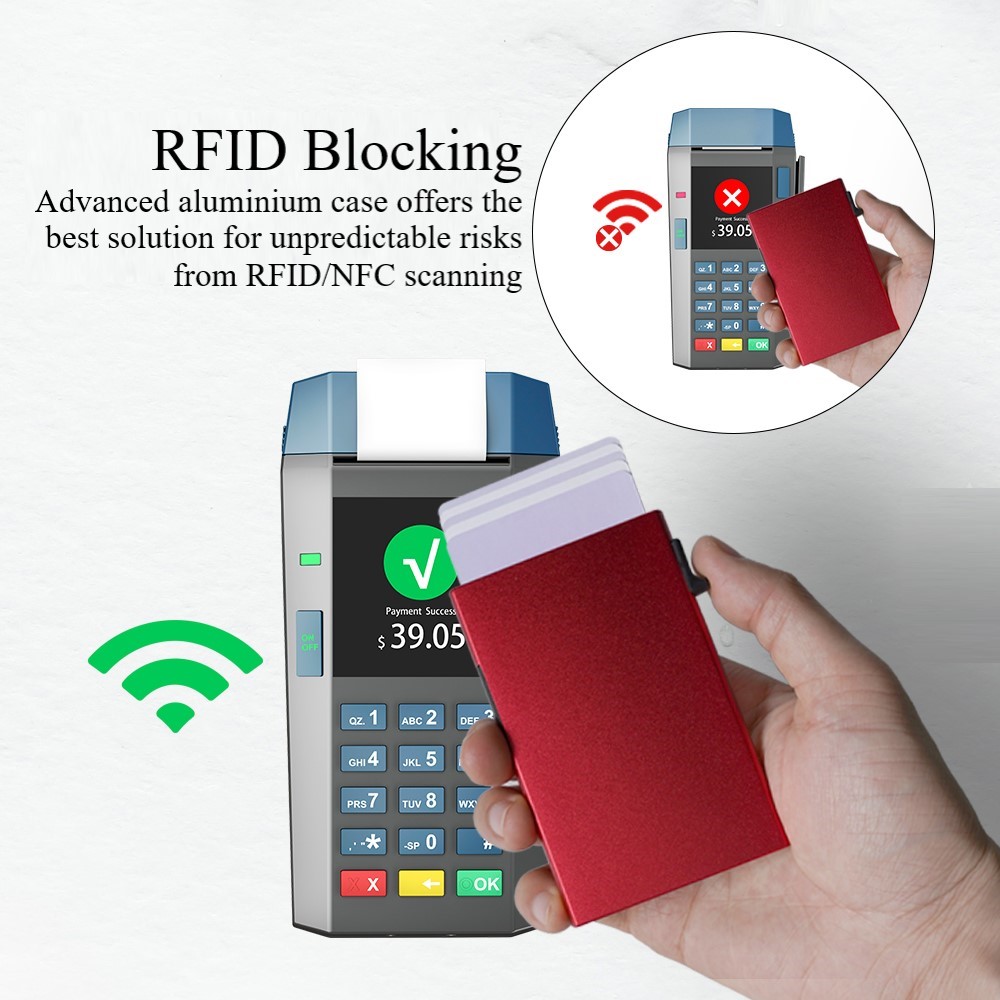 SM7.1 Slim Metal Case Pop Up Wallet for Men and Women – RFID Blocking Credit Card Holder – Red